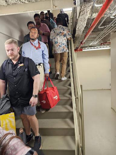 I have attached a photo of hotel guests flooding down the stairs with bags upon realizing none of the elevators were working. I have videos from inside the elevator and right after the rescue as well, but in an effort to protect the identities of the victims, I am not sharing those except where legally necessary.