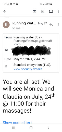 Read moreThis is a super quant small and quirky spa and resort from, I don’t know, the 80’s? They forever have my business because, as usual I was running late. Walked downstairs and someone already at reception, I thought man I am going to miss 15 minutes of my massage. Receptionist looked up, said “Mollie?” Handed me a locker key, told me to go get changed and sophia would be waiting for me. Omg talk about customer service. No worry about check in, no worry about the info they needed, you’re here, go get your treatment, we’ll take care of that after. The locker room is small and the bathroom is outside it, that took a minute to figure out! There’s a small gym downstairs that looked pretty well equipped for its size and a small pool and hot tub upstairs - the vibe was decidedly adult - thank goodness, no influencers or kids. One complaint - the “grill.” I mean I know it looks like it was built in the 80s but its still serving food from the 80s. Chinese chicken salad, really?! And not a vegan option to be seen. Come on that’s all easy enough to change without renovating the adorable time warp of the space! Impossible burger, Beyond burger, heck I’d take a classic Boca burger! But all in all a lovely spot. Update: how often does an employee walk by, have no need to interact with you, but sees you sitting alone ands asks if you need a water. These ladies...