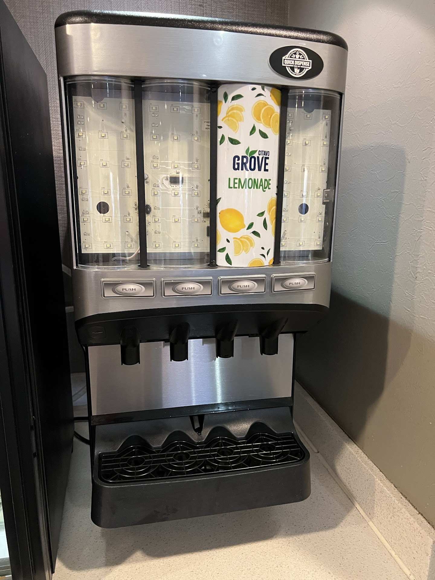 The HUGE problem, though, is the breakfast bar. It was almost half empty with no effort to restock. In fact, it felt like it had been this way for some time; not temporary. No milk—they put Half & Half in a pitcher and tried to pass it off as milk. I watched one guest after another ruin bowls of cereal by pouring in Half & Half. No juice…of any kind. The machine looked broken, nothing was labeled, and one tap after another was dry. Upon “alerting” the front desk, they just acknowledged the issue and directed me to small jello cup containers of cranberry juice, which ran out in minutes and were never replenished. So the only liquid available at the entire breakfast bar was a glass cooler off to the side, filled with ice water and some lemon wedges. They had two silver hot serving stations, one with microwaved link sausages and the other with premade/prepackaged microwavable breakfast McMuffin type sandwiches. It was actually comical to lift the silver lid and see the prewrapped sandwiches instead of scrambled eggs or pancakes or whatnot, like we’re all used to in these setups. They ran out of paper plates, and said “someone is getting some more.” Meanwhile, a guest was just finishing a do-it-yourself waffle batch and was desperately hoping they’d come with plates before his waffles burned up! Trust me, worst setup and service I’ve ever come across at a breakfast bar.