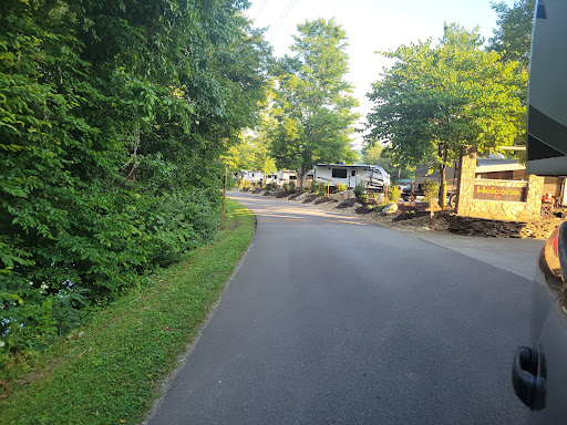 Read moreWe stayed here for 6 nights and had a wonderfully relaxing stay. The owners and staff are genuine with their desire to ensure each guest is pleased with their experience and we were always greeted with a smile and helpful information/advice with every interaction. Our site was a pull-through, flat concrete slab with a picnic table, 2 sewer hook-ups (for those of you with more than one black tank on your rig), water and the power pedestal was 15/30/50. All of these hookups were in good working order and looked very well maintained. If you want a fire pit you can 'rent' one, they will bring it to your site, and you get your money back when you return it. I really liked this concept. The campground is right next to a river and there is a special area across the road, on the river side, that is just for campers. It has a couple of benches and walkways down to the river. You can sit on the benches or walk down to the river and sit on the large rocks and watch the people tubing down the river or just relax and soak in the nice atmosphere. There is a splash pad and playground for the kids and for your furry 4-legged kids there is a fenced in dog park at the back of the campground where you can let your dog run free and have a good time too. There is onsite propane tank fill service at a very reasonable price. The clean and well appointed laundry room has 4 washers and 4 gas dryers and a nice large table to fold your clothes on. The office has a 3 sided covered porch with plenty of small tables, chairs and benches to sit and relax. Next to the office is a space you can use for gatherings and it is also used for Sunday morning services should you wish to attend. The bathhouse has two showers, two stalls and plenty of counter space at the sinks for both the men's and women's, along with electrical outlets for hair dryers, etc. and are kept very clean. Inside the office there is your typical general basic goods and souvenirs for sale. And bonus! Nikki, the unofficial (?) camp mascot, can oftentimes be found laying on the check in counter or on the benches outside and really loves it if you take a few minutes to give her some loving. She's just as friendly as the owners and the entire staff. :-) While we spent more than we generally like to spend at a campground we feel it was money well spent and will happily stay here again should we ever find ourselves back in the Smokey...