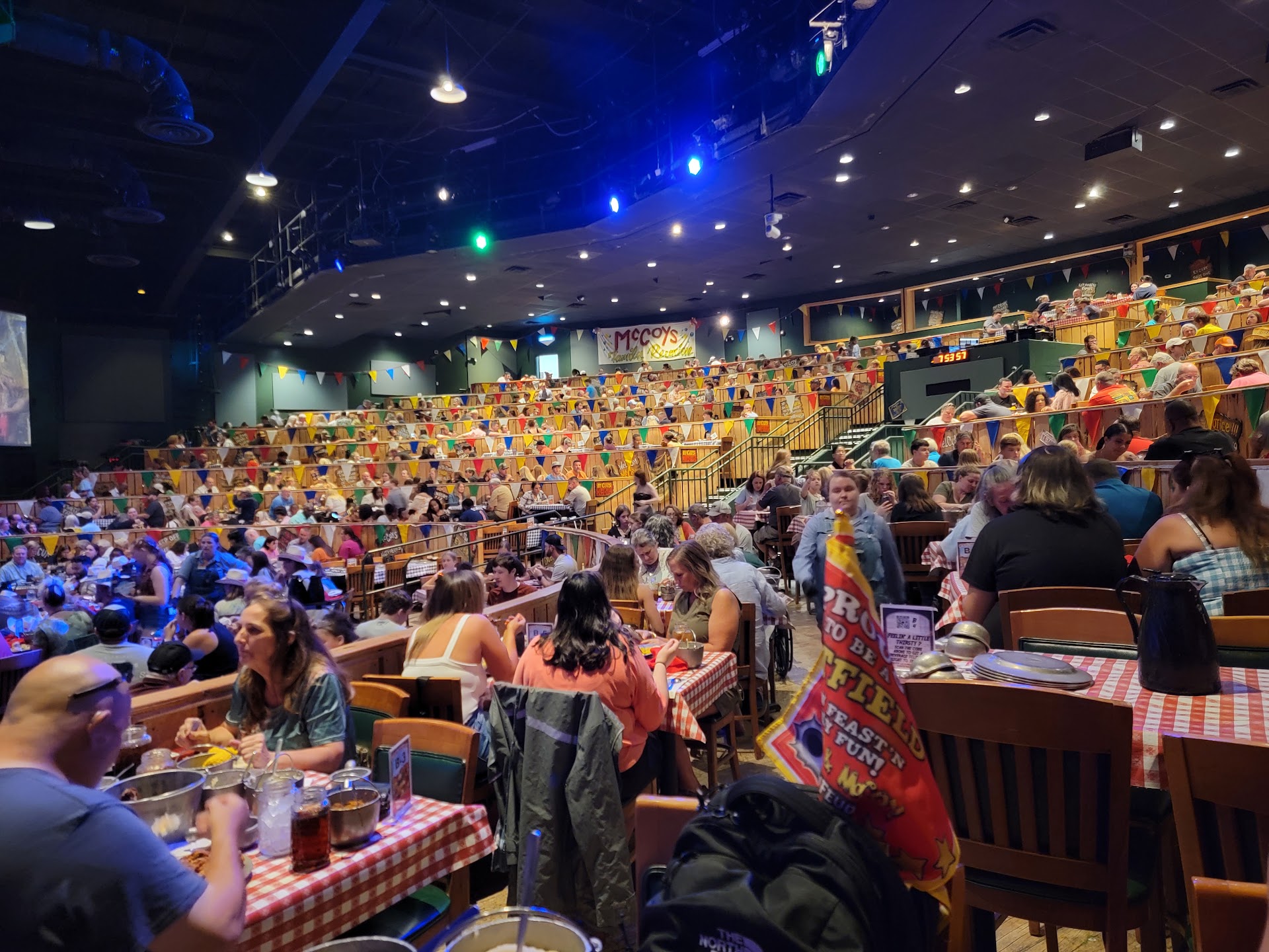 The performance was good. Everything else was rotten. They don't show a seating chart, so you don't know what you are reserving. They are deceptive. They call the middle price seat the 'standard seating'. And they ask ‘do you want standard seating?’ and you say ‘yes’, and then you later find out that you paid $10 more than the ‘economical seating’. Also, you have to basically turn your seat at least 90 degrees to see the stage. There are one or more disorganized lines of folks trying to get into the theater. And you don’t know if you are in the correct line. And there is a special VIP line for $20 more per ticket. It was not clearly designated. No one knew if they were in the correct line. The lines were 80 meters long. The line slowly moves. And then you find out they are taking stupid pictures of everyone at a booth inside, one by one, so they can sell you some photos. By the way, they interrupt your meal to come by and show you the photos at your table. The first 30 minutes of the “show” is a just a little bit of performance, and a lot the emcee telling you to go to the gift shop, buy photos, etc…. Everything they can to take your money. And the food. What a disappointment. Firstly, you sit down at 7:30 pm, which is 45 minutes after you got in the line outside. Sit at your table 10 minutes before they bring you some rolls. Another 10 minutes and they bring you some soup. Another 25 minutes and they finally bring you the chicken, coleslaw, 2 half-ears of corn, and pulled pork. Food wasn’t bad, but the service was poor. They have got you crammed in their like sardines. Every time I moved I bumped the lady at the table behind me. Our table was approximately 24” x 30”. And not level. Do you know how they serve 1,000 folks efficiently before the show?? The answer is - They don’t.... You are eating during the show. And the waiters are flying up and down the aisles. Management should just give them roller skates for what they are asking them to do. The meal is a joke, although the food actually didn’t taste too bad. It was just the worst service and serving environment imaginable. I forgot to mention, when you are half way through eating, the waiter sneaks up behind you during the show and starts clearing your table and whisks your food away before you can say "excuse, I'm not finished yet." And I forgot to mention, you need to bring a knife for supper because they don't provide one with your silverware. Or, in 10 quick minutes they will bring you one. The commercialization really ruins this show. The performance was good, and the actors/performers were good. The script was well written. Acting was good. That doesn’t make up for the poor environment though. Oh, the audience apparently thinks they are funnier than the actors, and several times would shout out unfunny lines. Like you did when you were in kindergarten to make your classmates laugh at the teacher. This interrupted the flow of the show, and you had to wait to hear the funny lines the actors had. I didn’t pay to hear some bozos in the audience blurt out stuff. The performers didn’t care, because, I guess because they were getting your money anyway. Unlike some other dinner shows, the performers weren’t available after the show. So you couldn’t see them or speak to them or anything. We scanned the magicmemories QR code to see our pics. The message said 'Oh, we're sorry, we weren't expecting you so soon. Try again later.' Wait 3 or 4 days and contact customer service. No pics, of course. Par for the course. They send you an email after the show thanking you for attending. And do you think they ask your opinion about the show? Oh no, of course not. Their email is to say ‘did you see our gift shop and don’t you want to buy something?’ Oh, and they send you an email before the show, that says '"buy your gifts early". No other helpful info. I wish they spent as much time organizing the que lines.