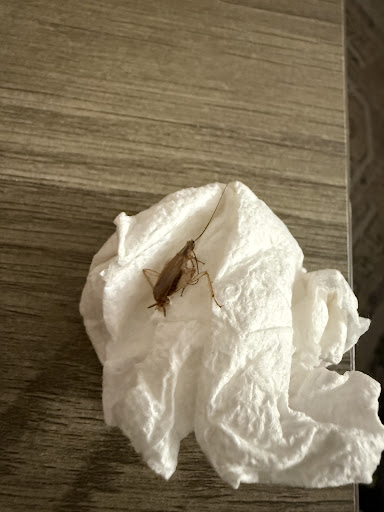 Later that day, we had all settled in for the evening. Mom had gone to bed. A ROACH came crawling across the end table where we were sitting. That was the end for us.