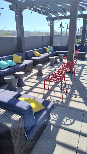 The rooftop sky deck is a nice surprise, and offers the nicest furnishings in the whole hotel. There is ample seating and a covered pergola with Edison lighting for a neat nighttime atmosphere. Tables are available to bring in food for dining.
