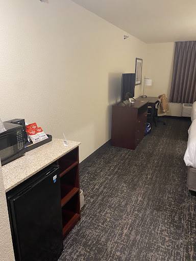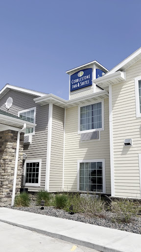 The cobblestone Inn and suites in Pine Bluffs is the very close to the border between Nebraska and Wyoming. It is a relatively newly built hotel and the rooms are well designed and clean. There are some minor issues that can make a big difference if improved upon. The bathroom light was strobing which caused me a headache. It would have been nice if housekeeping had addressed that issue. This selection for the food in the refrigerator in their convenience store is very narrow—It has minimal healthy options The breakfast has also minimal healthy options there are some sugary yogurt in them and there is spices added to the scrambled egg, which is not optimal for everyone. On the plus side— there is a tea available 24 seven at the front desk and the staff is super friendly. As far as the location goes, the hotel is opposite a Sinclair gas station which has a store with basic items should one need them. There is also a dollar store about a block away. Also, the hotel is five minutes away drive from the Wyoming and Nebraska welcome signs—good photo...