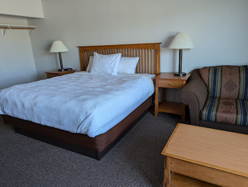 Read moreI was in the area for work purposes and chose this place primarily for two reasons. The first was because according to their photos in Trip Advisor and Hotels.com, hot foods items were included as part of their "Breakfast" such as sausages, eggs, biscuits, etc. Turns out that this was not the case, but rather the typical items one would find in other hotels such as cereal. When I asked them about it, they said that due to only two people staying in the hotel, they couldn't justify making the hot items. How disappointing!||The other reason for choosing this place was because they offered a kitchenette. Due to my work schedule, sometimes it is easier for me to bring my own food rather than eat out. So it was very handy to have a fully stocked kitchen to cook in. With that said, some of the dishes were still dirty and looked like they had just been wiped clean instead of washed. Gross! ||Other than that, the rest of the place was clean.||Lastly, this place could seriously use an update of their furniture and bedding. The couch sagged, the king-size bed sagged on the edges (so I slept on the high spot in the middle), and the batting in the comforter was clumpy making it not very warm.||I would not...