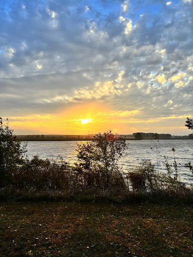 The lake water was warm, but mucky. We saw kids swimming in it, but we only dipped our feet in. The beach was small and far away from the campgrounds. There was absolutely no biking trails, only a small grass trail for "hiking" that went around part of the campground and up to the beach. The campsites were rocky and had a lot of dead wood laying around them that we could NOT use. The bathrooms were very clean, but the shower timers only lasts about 20 seconds.