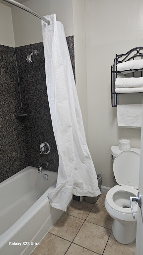 Read moreTrashy to say the least. When we arrived, the first thing we noticed was the dirty carpets and tile that were in the lobby. Dark dried stains all over the floor, a small container of cream cheese, crumbs, smelt like marijuana???, etc. The clerk had her head down on the counter watching something on her phone. No uniform or attempt to dress appropriate. i.e Wearing slippers, a jacket from the dive bar next door, etc. Overall not giving us a good first impression of this hotel, but we would of been charged if we walked out so we still decided to stay.