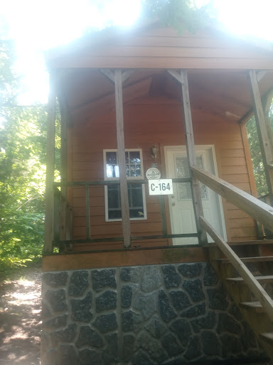Read moreHeard of the campground from a family member. Due to health issues, I can’t really tent camp anymore so we like being able to rent cabins for our summer getaways.||We rented a deluxe 4 person cabin, C146, over the weekend. It comes with a bathroom so I can’t review the public bath houses.||The cabin itself was small and nice. Some reviewers mentioned cobwebs and being unclean. It’s a rustic cabin, not a hotel. We’ve camped in a lot of primitive sites and were pleasantly surprised how stocked the kitchenette was with basic cookware. The AC was very welcomed too as it was a hot weekend. We spent lots of out on the screened porch enjoying the breeze as the sun set.||The cabins are very close together. Parking can be a hassle if you or anyone in the area has more than 1 vehicle. We only had 1 car and beyond having to wait for other people to move vehicles out of the middle of the road, we had no problems parking in our spot. There are golf carts for rent, for $50 a day at the time of the review. They make for easy trips around the site as the roads can be narrow for multiple cars. And as everyone is close together, if you get loud neighbors you will hear them which was our Friday night. ||Sheets do not come with the cabins but can be rented. Each set comes with 2 pillowcases, a fitted sheet, a flat sheet, a blanket, a washcloth, and a towel. (It might have been 2 washcloths and towels. We only used the sheets and pillowcases for the provided pillows). For the 2 mattresses it was $36. For the price of the cabin, I would have at least expected sheets and pillowcases on the pillows in the cabins (and hand soap!). ||The beds were the big drawback. We knew it would be full sized bunk. We didn’t know that the bottom mattress is on the floor. Attached picture is from the angle of sitting on the futon couch. It was too tough getting out of it in the morning and I opted to sleep on the futon the second night. And because the frame and mattress is on the floor, it didn’t look like that area got cleaned as much. It doesn’t bother us but it might some folks.||The way our cabin was situated, the fire pit and picnic bench were in the back which wasn’t ideal and we didn’t use it much because of this. ||The pool was good. There is only set 1 of steps into the pool and no ladders so it gets congested with kids playing on them and shoes and toys piled up. It was nice to float and cooled down though. Lots of activities for smaller kids like a glow parade, a foam wagon ride, movie night, and a lollipop hunt. My teenager wasn’t too interested in them but I did talk him in to a ceramic painting class. We did a lot of fishing in the 3 ponds that allow catch and release. They also had playgrounds, shuttle boards, horse shoes, and other fun camp play areas. ||Accessibility - I saw only one cabin with a ramp but the general store where check-in is has 2 small steps in and the check out counters are up high. I would say it’s not wheelchair accessible. I have mobility issues but can use a cane for short distances. Park spot was right next to the cabin. The stairs into the cabin had railings. The golf carts make moving around the site easy but you may need to park and walk short distances to where you’re going. There were benches by the ponds and some shaded depending on the part of the day. The signs didn’t have braille or raised lettering that would help vision impaired folks. ||We had a lot of fun! It was relaxing and the staff we interacted with were friendly. It was really nice listening to the frogs on the ponds at night. I think if you go in with hotel or luxury cabin expectations then you may get disappointed. We expected a rustic cabin and had a lot of fun. It’s going on our list of...