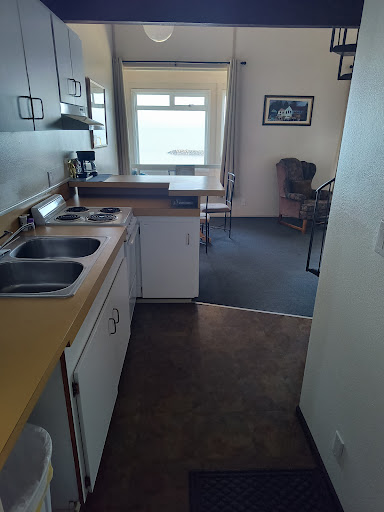Read moreOur room (# 3, older “deluxe” 2-bed room) was very clean (#1 priority) and we enjoyed a good night’s sleep on the comfortable beds. We would never return, though, as we were disappointed with the “feel” of the room as we entered: the old baseboard heaters in the room were not functioning (a portable heater was plugged in — in the middle of the chilly room — “Oh, sorry, there’s an electrical problem”was the general remark by manager when I asked about the situation). There was also an old, “tacky” paper on bath mirror saying that the tub was not usable due to renovations in progress (really?!). The view from the sun porch (with no opening windows and a very sloping, dirty floor) was lovely. We were in Port Orford on a Wednesday evening and had trouble finding any place open for dinner (the place recommended by manager was closed on Wednesdays). Ate at the Salty Dawg, a small town tavern vibe with loud jukebox music, pool tables — not a place I’d ever recommend to families with children, although we were entertained with the music and watching the locals. The food was good, as was the service. We were looking forward to the stay in locally owned oceanfront lodging, but disappointed with this so-called “deluxe room” reality — not the cute, quaint experience expected in a beautiful...