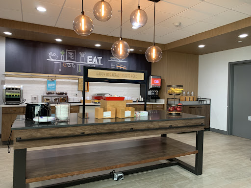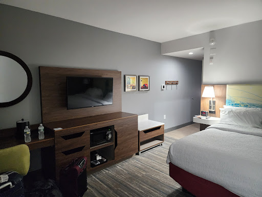 Read moreThe positives about this Hampton Inn is that the rooms were large, clean, and the beds were comfortable. It stopped there. I reserved a handicap accessible room with a tub as I was traveling with a disabled adult. The room was large as they always are, but the room was full of flaws. The refrigerator did not work. The sliding barn door to the bathroom was not only heavy but screeched terribly when you tried to close it or open it. I asked for a quieter room on the top floor. I was given a Corner room so that the front of the room faced the main drag, the side of the room faced I- 95. Very noisy night with very little sleep. The breakfast was sad. It sign that it was on a Simplified breakfast. We’ve been traveling for eight weeks and I’ve stayed and dozens of Hampton Inn , this breakfast by far was the worst. Number one there was only half the amount of things that are normal Hampton Inn even offers, what was there was not great, there was one bagel in the bin, the selection was meager and the person that was supposed to be taken care of the breakfast was nowhere to be found. The same thing cost just as much is some of the better ones we stayed in another states so I’m not sure what the difference was. When we reported all of the issues with the room when we checked in the lady said OK I’ll let someone know. We were never offered another room normally offered any sort of help with the door or the refrigerator. Definitely not worth a stop. Go down two more exits and there are dozens of hotels that while they are a little bit more expensive or a whole lot nicer than this one. I’m really surprised as this looks like a newer property. Like I said the beginning the hotel is beautiful but the amenities are certainly not worth the price. Update: when we checked out in the morning we asked if everything we complained about the night before had been written down and it had not. The morning front desk clerk said I will speak to my manager about this we stood there and nothing happened. We finally just left. Will be...
