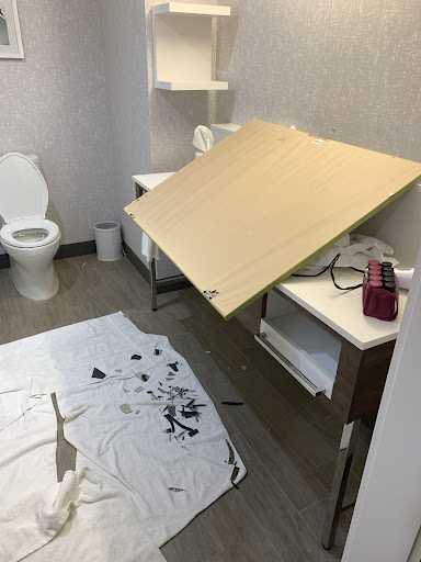 Bathroom door doesn't actually close. It's just a sliding door that you can see light around on every side, even when "closed." Many hotels do this now, and every one of them should be fired into the sun. No one sane has ever liked this idea. "I liked the bathroom, but the door closed and made me feel separated from my family. I sure wish there was less in between me and my girl while I was using the toilet!" Who says that?