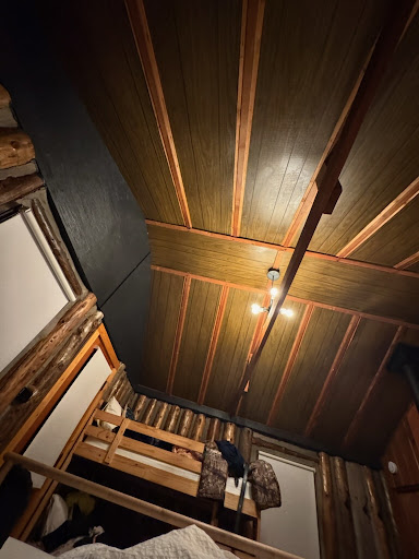 If you do come here take the time to appreciate the creativity used to create the cabin, with random parts in random places that may or may not be functional but at least they add to the hipster cheap vibe. Not only that, look at the ceiling and you’ll realize that despite being in nature you get a great view of fake wood linoleum that almost feels like an Andy Warhol painting.