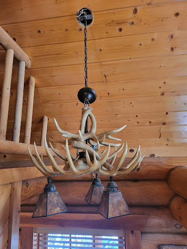 Read moreEleven of us stayed for a Friday and Saturday night in February. There is a master bedroom with a full bath on the main floor, three bedrooms in the basement, and an open loft with three beds upstairs. The loft had bare wires hanging down where a ceiling fan should be and we couldn't find a switch to turn on the ceiling fan over the living room. The basement bedroom I stayed in only had one outlet and no window. There are two simple fire rings. The one by the badminton net had several bolts and screws from someone burning the log-furniture bench and chairs. The fire ring by the back door still had half burnt spindles from when the porch railing was rebuilt. We paid an extra $25 to have firewood delivered, but none was brought to us. The front porch had a couple chairs, but there was no other chairs for sitting around the fires. The kitchen was good and the appliances all worked. There is a TV in the living room and basement. We didn't turn them on, but there are satellite dishes on the roof. There was one roll of toilet paper in each bathroom, no extra garbage bags, and no paper towels, so bring some with you. I don't think there were any hand or kitchen towels. There is a big sectional couch in the living and nice dining room table...