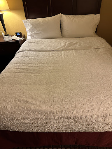 Read moreWe stay in Hampton Inns regularly. They are usually consistent in their service and quality. However, this particular location has us questioning our choices for the future.|We did digital check-in and went straight to our room. When we were entering the room, a dog started barking from across the hall. Had we known this was a pet friendly hotel, we would have opted to stay elsewhere. We called the front desk to only be told that they would do what they could because they were alone and just too busy at the moment. The clerk continued to share how busy it was and that the check-inâs have been constant all night.||However, the dog kept barking for the next hour until we fell asleep after turning on our phones to play sound so we could block out the noise.||In the morning, we went for the breakfast and were disappointed tremendously when everything was picked over or just empty. No eggs, sausage, milk, bread. You could make a waffle or have pineapple. Apparently the hostess had been asked about the status multiple times because she sighed and responded to another guest that sheâs working on it and canât make the oven...