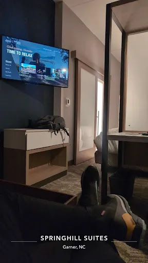 We chose this SpringHill as an overnight stop on a recent road trip; though we were traveling I-95, guest reviews for the majority of I-95 hotels in NC raised questions about vehicle security issues so we decided to veer off route a bit. The SpringHill was conveniently located right off I-40, added less than 20 minutes total to our drive from FL to NJ, and had a handful of quick dinner options nearby. Furthermore, the property was essentially brand new and fewer Bonvoy points than most other options in the area! ||The room was typically SpringHill decor, though itās worth noting the room felt larger than other SpringHills Iāve stayed at in the past. The room had one of the largest closets Iāve ever seen at a roadside Marriott! We also really liked that the stairwell had windows throughout. Breakfast in the morning was well stocked, had a good variety of food, and I appreciated that full-size water bottles were available for guests. The staff was very friendly, especially Christine at the front desk and the two gentlemen that worked the desk in the morning - one of them walked around to every table at breakfast to make sure guests had what they needed. Overall, we thought this was a great choice of final stop after two weeks of traveling; we felt very safe at the SpringHill and would definitely keep it in mind for...