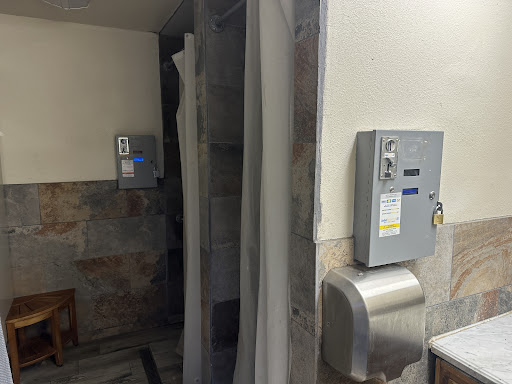 Restrooms: There are restrooms which for our visit were kept clean (as far as camping standards go) as well as showers. HOWEVER, the showers are pay to use, being 4 quarters for 5 minutes. There was a sign saying to ask the manager for coins and they would give them to you, but they wont always be there so make sure to bring your own just in case.