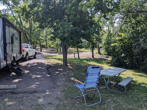 Read moreNice campground, bathrooms and showers available to use, water filling station, dump station, drinking fountains , fishing dock, lake, complementary newspaper , spots of several sizes and lengths, paved spots, firepits in each, camp hosts have fire wood available, spots are a little close in some places, updated playground , large pavilion with a grill, only electric hookups at the camp sites. Was a very busy place , lots of kids present and families . decent...