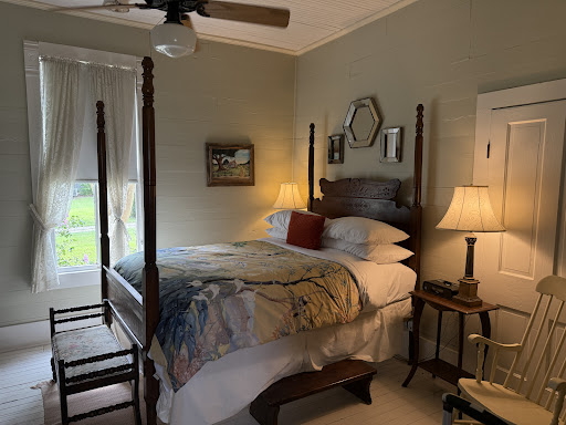 A beautiful place to stay! This was our 2nd time staying here and it was just as magical as the first time! The location is good as it is near the freeway. The Cottages are very cute and the grounds are beautiful. The decor in the cottages reflect the time period of when they were built but you also have modern amenities to make your stay enjoyable and comfortable. There are antiques throughout the rooms and historical photos that are interesting to look at. Most of the cottages can only accommodate 2 people but I believe there might be one that can hold 2 adults and 2 or more kids. The innkeepers( Ken & Lyn) are very nice and I would say one of the best parts to staying here! Miss Lyn is so kind! She is always available by text should you need anything. Lyn stocks the refrigerator with lemonade, some water bottles, and a few juices. She also had a few homemade chocolate chip cookies waiting for us at check-in! Breakfast is the icing on the cake for me! Lyn comes by in the morning , taps on your door, and leaves a big basket with 2 plates of the most delicious breakfast ever! It's different everyday. Egg casserole, fruit, yoghurt, muffins, biscuits, a printout of the weather for the day, a menu describing what she has cooked. The two times we have stayed there , we had family obligations we had to go to so we weren't there during the day but next time we hope to have a little more time to just enjoy the grounds. There is a large pond you can fish at , chairs to relax in , fire pits at your cottage, etc. If you are ever in need of a place to stay while in the area, I highly recommend Maison D'Memoire! or if you need a place to stop while on a long journey, this is the place to treat...