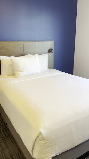 As far as the actual stay, the beds were very comfortable, the breakfast was fantastic, and the outdoor seating area was a nice, calm relief after being in the room for so long. The hotel itself is beautiful and clean, and the pool + hot tub were great!