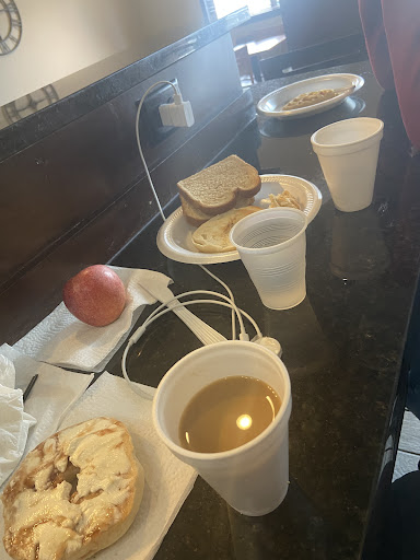 Breakfast options were limited, but good. They had waffles, bagels, toast, cereal, oatmeal, yogurt, apples, juice, water and coffe. I just wish there was a protein like sausage or eggs. There's also a microwave. There wasn't a fridge in the room.