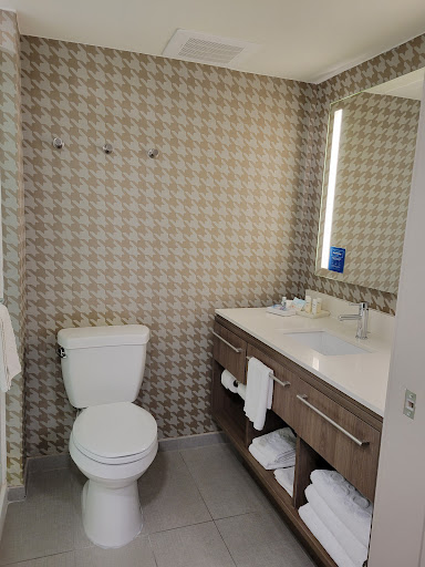 Read moreAn older, smaller Home2 Suites, didn’t quite live up to our experience with other Home2 Suites (currently our preferred hotel brand due to their multiple amenities), but better than many other hotels. They were completely booked, understaffed (only one person working the evening shift) payed over $100 more for the room, than other locations. They were rationing keys, limit 2, and the mobile key system was down. AC in room 117 (accessible tub room) barely worked, (Lobby and hall were very cool) blinds had been broken and closet curtain was hanging in its place, no blackout curtain. Many of the USB plugs didn’t work. Bathroom door would constantly shut, couldn’t leave ajar to see at night. Bathroom was dim. Trash and crumbs left under the AC unit, and hair in the tub and drain was broken but usable. At least 2 spiders and some little flies in the kitchen area of the room. Roll out table was very wobbly. TV had an annoying blue hue. Fridge was too close to the room door, making it awkward to access. Room door, fridge and bathroom doors all need to be coordinated to access. Front covered drive only fit one car, which made for some accessibility issues, especially during a heat wave or if it’s raining. Can only load one vehicle at a time. While we were loading with our medically fragile child, another wheelchair user was unable to load. Did appreciate the Home2 Suite features of apartment sized fridge, sink, microwave, dishes, the beds and pillows were clean and very comfy. Breakfast was good, but only 1 waffle maker. Counters were roll up, towel hooks were lower. Beds were a normal height. Had the lower lock, but not the peephole. Room was a little narrow from an accessibility standpoint only, but otherwise spacious, we had multiple traffic jams, and that’s with leaving the wheelchair in the car (ambulatory wheelchair user). Overall moderate accessibility accommodations, but we’ve had better at other Home2 Suites, missing several smaller thoughtful touches we’ve grown accustomed to. Inside of tub is slightly raised compared to the bathroom floor, which can cause issues for some. Separate handheld sprayer in tub on adjustable rod. Overall, would keep this as our “backup“ over other “unknown” options from...