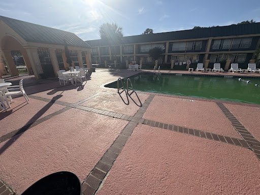 The parking lot has a number of potholes and should be repaired before somebody injures an ankle. I originally chose this hotel because it was very hot that day in Georgia and I saw that they had a pool and I thought that a pool would be very refreshing in the heat. Upon looking at the pool, it was all green and obviously had not been cared for and at least a couple of days. I sat out in the patio area enjoying the evening, there was a nice breeze. I was sitting in the âcovered areaâ and I noticed the decorative woodwork that has started to break and fall. The rest of this woodwork really should have been removed long ago as itâs ugly and probably a hazard. The windows look like they havenât been washed in several months, the pathways and walks havenât been swept in days. The attached restaurant, has a menu posted and a glass covered case outside. The menu is so weathered and faded, itâs pretty much unreadable. If the restaurant management is different from the hotel management, itâs obvious that they donât care either.