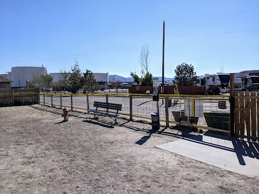 The enclosed dog park is on the east side of the campground, and is divided into two sections (one larger, one smaller) by a 3-foot high fence. We only used the larger park, which was mostly dirt/sand and just a small patch of dry grass. The fencing was a wire mesh with subway-tile sized openings rather than a chainlink fence, so a really small dog could potentially squeeze through one of the openings.