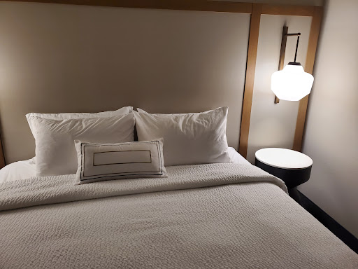 Read moreI felt really blue after staying in this hotel.This hotel was downright creepy. It is in a wonderful area in a resort community, and the photos on the website looked great. But what they don't tell you is that because the windows are tinted a heavy, azure blue, and as result all natural light that comes into this hotel is blue. Really, really blue. The food looks blue. The shower looks blue. And yes, the bed looks blue. It was one of the strangest stays that I have ever had. The woman who checked us in was great, but the service in the breakfast area was dismal at best. Breakfast was supposed to be from 6am - 9 am I think, but when I went down about 7:30 there was barely any food, and what there was seemed to have been there for awhile. The biscuits with the congealed gravy were harder than a hockey puck, and instead of scrambled eggs, they served these weird egg saucers that were folded in half. Needless to say, breakfast was inedible.