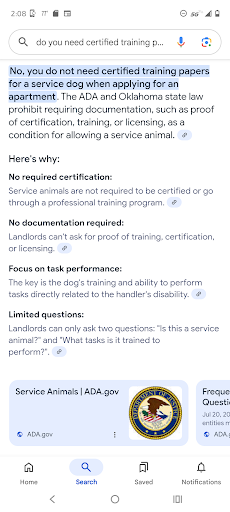 Read moreDoes not know APA laws. Got snooty with me when I told her she's not allowed to require documentation other than a doctor's note and believe they do not have to obide by APA laws because they are not an apartment complex. However, "Under the Americans with Disabilities Act (ADA) and state laws, service animals must be permitted in public accommodations, including RV parks." I don't have the energy to report them to APA since she triggered my PTSD and now I am burnt out, but I am copy/pasting this in case it gets deleted by them in which case I will go back and report them since they choose to...