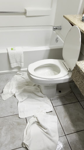 I had an early morning flight and needed to get a good night sleep. Around 10pm I woke up to the sound of water, and there was water literally gushing out of the ceiling into the toilet. I tried calling the front desk multiple times and no one answered. Finally, I went downstairs, and no one was there. After looking around, I noticed a woman outside staring at me. I made eye contact with her and she came inside. I told her what was going on, and she threw a couple of towels at me and got in the elevator with me. She dropped me off at my floor and then went upstairs to check on the person above me. I waited for about 10 mins and heard nothing, so I went back downstairs and she was back outside. She seemed very annoyed that I was back, and then told me that the lady upstairs was taking a shower and forgot to do something with the plug or shower curtain.. either way, shouldnât have produced a waterfall from the ceiling.