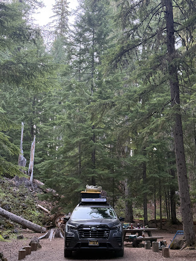 Word to the wise: Get here as close to midday as you can to get a site in the lower campground. We saw plenty of people rolling through at 4, 5, 6 pm after it was long full. Meanwhile, the ~5 sites in the upper campground above the falls were deserted despite easy access via a forest road that branches from the highway just to east. There's also a waste water dumping station and vault toilet in the upper campground.