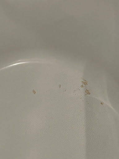 The bathtub also had strange stains in the color of excrement. It was repulsive to look at while taking a shower because nothing else was that color. I'm not sure if it was a result of building construction or not, but the bathtub caulking was not brown in color.