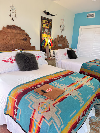 We stayed in Thelma’s garage and loved it! Had everything we needed. We took long soaks nightly in the duo claw foot tubs. Also liked that we had a full size frig/freezer combo and microwave, a dining table and chairs and two queen beds. The floor to ceiling wall art of shirtless Brad pit in a cowboy hat was so cute and also one of Thelma and Louise on the wall with the lounging sofa. The decor was Devine throughout. We sat by the outdoor fire pit in the evening and enjoyed the brisk air and the beautiful pastures before dark. We visited the Wander Inn’s gathering place and The Crown for ice before the trip home. It is very relaxing there and peaceful. The hot homemade biscuits with jelly and butter arrived daily, wrapped in a red bandana and placed in a tin bucket. So yummy! Will definitely recommend highly and will stay again. I could go on and on. Found a one of a kind necklace at Junk Gypsy’s Store and went home with 5 of their small wines for family and the cutest little pop belly bottomed coffee...
