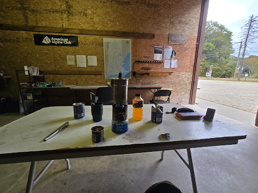Cons: Has porta-potties instead of regular or composting toilets and they are all bunched together in the sun - very toxic. We found it was better to just go across the street and use the one at the Rumney parking lot. There are fewer tables than there are groups camping so you may end up doing everything on the ground. There are no showers (the river is good for that though).