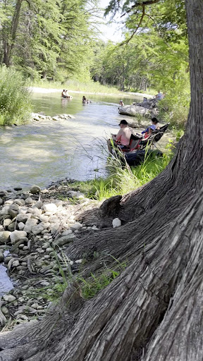 Read moreWe visit the area frequently and have stayed at many different cabins. This one was an efficiency and the last available on the Easter weekend so we grabbed it. It is really a no-frills cabin and as such I didn't mind paying $95.00 per night. In the peak season, I would NOT pay $140 night for this efficiency cabin. You can do better elsewhere.||||Our cottage was okay; just like the pics, with tiny bathroom, kitchen (we only used coffee pot) so I cannot say how the dishes/appliances were. The concrete floors were okay, but as others said, not a rug anywhere. Our queen bed was comfortable, unlike other reviewers have said. The tiny TV on top of the refrigerator is odd. Come on, add a flat screen above the couch!! Also, our porch was quite small compared to others. Nice fire ring and grill we didn't use. ||||Pros: 1) as others have said, location location location! Right next to the Frio river, Concan, Garner State Park and Leakey. The river front is beautiful & easy access. 2)The Cottage 2 is behind the pool area. 3)They DO allow dogs and we were not charged a fee which is a definite pro for us. They did not inspect my dogs or look for a crate. We did leash them & take them with us. 4) Gabby and Nancy were very nice in the office.||||Cons: 1) The pool was so dirty my family was afraid to get in, although others were swimming. 2) This is not really a retreat, more of a RV park with cabins. 3)The cottages and cabins are packed in really close. We like more privacy, although our neighbors were friendly and it was surprisingly quiet at night, even though it was packed.||||Lots of rules you must sign and agree to regarding clean up and pool use. I took pics of how I left the cottage for fear they would charge me. I came prepared with my own sheets, towels, rug, washcloths, etc. You need your own bath soap also. They did provide handwash, TP and paper towels. Bring your own hangers or line to hang things on, although you're not allowed to nail anything so IDK.||||We highly recommend Neal's Dining Room in Concan for lunch or dinner. Eat on the patio with a view of the Frio! The service was good, prices reasonable & lots of hummingbirds to dine with you on the porch. We didn't get to eat breakfast there. We ate at a steak place in Leakey that was a nice change also.||||Overall, we had a good time and will be back to ride the 3 Sisters. BTW, plenty of room in front of our cottage for our small SUV, small trailer & 2 bikes. No need to store the trailer elsewhere and there was good paved roads in...