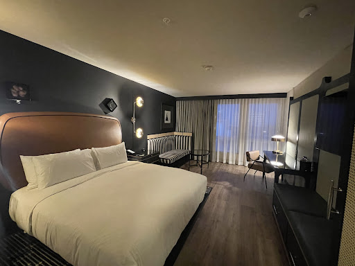 Overall: would stay again! Nice hotel, room, bar, food, very convenient location.LOCATION: Convenient! Right next to DOCO and the Golden 1 Center. Old Sac is a few minutes walk away. Public transport nearby.HOTEL: The decor was a lovely, sophisticated, modern take on various historical periods. Music is a theme, nodding to the historic past of the building.Balcony bar - Art Deco. Clean, eye-catching, charming. Emerald velvet chairs and gold-toned metal accents, whimsical 1920âs & â30âs music playing overhead, and servers dressed in simple roaring â20âs attire. Menu: Small bites. Phyllo baked brie, oysters, ahi poke, short ribs, Asian lettuce wraps, and more.1st floor restaurant - â7th Street Standardâ, is the name. Bright & elegant with simplicity. This restaurant can be a standalone; itâs better than a âhotel restaurantâ in food quality, artistry, and presentation. Didnât eat here this time, but have before. I recall everything being good! Great drinks last time!! Had happy hour drinks this time ($10), still great! Handcrafted, fresh, subtle sweetness for balance, nothing syrupy or fake-colored (reg price $15). Happy hour food and drinks available 3-6pm. Full menu includes trout, salmon, pork belly, and other goodies. ROOM: I like the decor. The lamps were cool: gold dipped bulbs, bronze-colored cones, retro meets are deco feel. Thereâs a handy motion-censored light under the bathroom vanity when you donât want to turn on a bright light at night, light-framed mirror for easy getting ready, spacious bathroom. Views from my particular room were not worth seeing. Good blackout curtains in-room, lots of natural light when open. Bathroom basics included: shampoo, conditioner, lotion soap. Not included: q-tips, cotton balls, etc. The mini fridge could fit some small leftover food boxes. Plenty of outlets near the bed. I donât recall any food snacks offered for sale. $5 Fiji. Open rack closet, and drawers available. I believe my room was 320 sqft, with enough space to roll out a mat and do a room workout, if thatâs your thing (or gym on 4th floor). AREA OFFERINGS: Thereâs a Starbucks Reserve steps from the hotel and many places to eat, drink & entertain within easy walking distance (steakhouse, bowling alley, movies, rooftop pool bar, beer vault, and SO much more!). While itâs a nice area (million-dollar condos and attractions next door), another block over in one direction becomes a not-so-nice area (homelessness and refuse), so just be mindful of what direction youâre heading, if that bothers you. PARKING: There are unattended daily parking lots right next to the hotel ($13-$16ish/10hrs), hourly metered parking, attended hourly/daily lots, valet ($40 seems to get you 2-day parking with in & out privileges; I valeted early evening, pickup needed before 2:45-ish a.m. on the third day). Valet had a very easy texting system. They texted me my valet ticket with a clickable link to call my car when desired. The link let me know the progress of my incoming car (ârequestedâ, âon the wayâ, âreadyâ), so I knew exactly when I needed to head out and could enjoy my time until then. You can tip through...