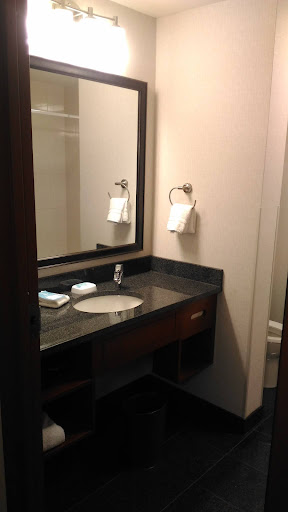 FACILITY: New Facility, with a mix of classic and modern style. well designed. You can access the Facility from 4 different entrances located on the 4 sides of the hotel. great idea. very good Layout. Big breakfast/dinner/ lunch area. pretty big lounging area with plenty or armchairs, tables, chairs and comfy sofas. They have a TV area as well were you can enjoy your meal/drink and watch TV, with your family or friends. They have a big outside parking lot and a underground parking lot (very useful when it rains), here you can also find and electric car charging station. Every floor has a laundry room.