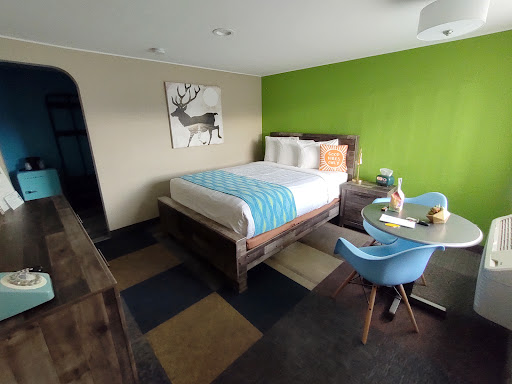 Read moreRalph was AMAZING! He would try and help customers however he could and was incredibly patient and kind. The owner, Anita was not nearly as patient or caring. She tried to correct an error they made (They had changed our reservation without notifying us and we arrived to discover they did not give us adjoining rooms we were promised - which was necessary so I could check on a family member with health issues during the night and/or they could simply come into my room), though Anita had absolutely zero patience for a memory-impaired elderly woman asking her questions. The "grab and go" breakfast was empty within minutes of opening (we arrived to find a single little bottle of juice). Luckily, Ralph gave us a container of yogurt and another little bottle of juice for the road. Cute and colorful concept with some outdoor play space for adults and children. Rooms basic though pretty good - the bigger the bed, the less room for any kind of table or desk. Unfortunately, cleaning agents used leave a stale, dry & unhealthy odor. Room darkening curtains are REALLY needed as lights outdoors are very bright and kept on all night. RESPONDING TO Anita's note below: We were indeed promised those adjoining rooms, by Janessa the first time we called and booked the rooms and then by Ralph when we double-checked they would be available on our way back. We had a very nice experience the first time and all was fine. When we arrived back and were told the adjoining rooms we were promised were given to someone else, this was very unsettling (if you can imagine trying to care for someone who may wake up at any time during the night and could wander outside) Having the promise of adjoining rooms was the only reason we booked two rooms instead of trying to share a single. So you gave us a back room away from the road when we explained the situation. Then we decided not to stay a second night because our parent was feeling ill and because you told us you had someone who wanted those rooms the second night. I was at the breakfast "grab and go" 10 minutes after opening and found it empty. My parent went back later and also found it empty and so came to you to ask if there was anything still available. They wandered outside BECAUSE we had side-by-side rooms instead of the adjoining rooms we had been promised....