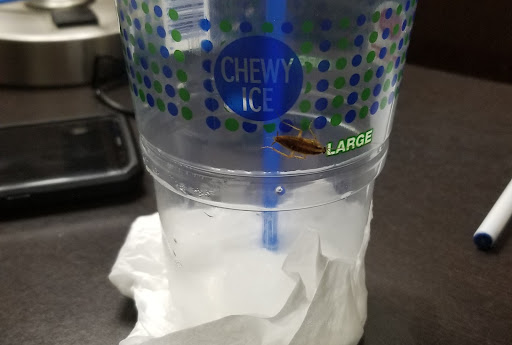 In the lobby, items just seemed to be placed anywhere and left for hours and days at a time. There was a giant (not being used) floor fan as well as unused wet floor signs stored alongside a wall in the lobby. Later on, an empty floor mop and bucket were left along a different wall.