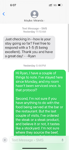 So then I got to my room. The AC was pretty pathetic and the room was hot. So I went to the ice machine. Not working. At this point I'm laughing. At the hotel that is. How bad it was. So I went to the gas station across the street. When I got back the three guests were still at the front desk speaking to someone else and it appeared he was handling the situation much more professionally.
