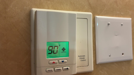 5-22-24 Wednesday. Stopped at the desk on the way out and went over the above with desk person. Was told that it was an old hotel, and they could only have heat or cooling not both and it was turned to cooling mode at this time. Said he would get maintenance to look at the room. When we arrived back that evening, they had turned on a gas fireplace that was in the room the thermostat was still on 90 degrees where I had left it that morning. The room was warm and satisfactory the rest of our stay. I was able to adjust the thermostat, so the room was comfortable.