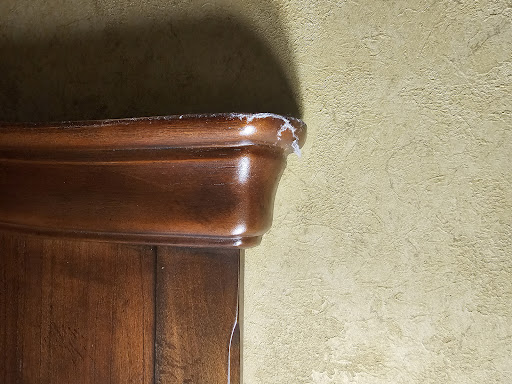 The room itself looked and felt neglected. Above the bed, wallpaper was peeling off in large patches, and the bed itself had a metallic clank each time we got in or out. The pillows and sheets were visibly worn, with several stains. Adding to the charm, we found food crumbs from a prior guest left on the bedside table.