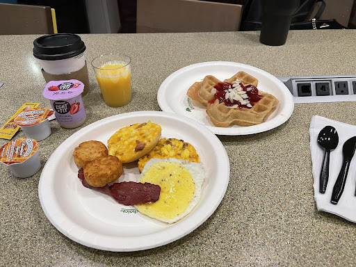 Room & Amenities ⢠I stayed in a larger studio-style room, which I loved. The counter space and cabinet space were great. ⢠The room had a dishwasher, but I didnât use it since I didnât have enough dishes. I appreciated that utensils and dishes were provided. ⢠Some areas of the walls (paint or wallpaper) were deteriorating. ⢠The windows had a noticeable dust/mist, making them less than crystal clear. I wasnât sure if this was due to the inside or outside needing cleaning. Housekeeping ⢠My room was cleaned daily, and my bed was made, which I appreciated. ⢠However, it often felt like housekeeping started cleaning but got sidetracked, leaving tasks unfinished. Some examples: ⌠Trash wasnât always taken out. ⌠Tissue box was moved but not refilled. ⌠Trash bins were repositioned but not emptied. ⌠My soap bar was replaced daily, even if only used once, which felt wasteful. ⌠I had to request lotion and conditioner refills at the front desk instead of them being automatically replenished. ⢠Cleaning towels were left on the bathroom floor for pickup, but sometimes they werenât taken. Technology & Internet ⢠Wi-Fi was slow and required re-logging in daily, which was frustrating after long work shifts. ⢠USB chargers by the nightstand did not work, forcing me to use an adapter block and plug into an electric outlet instead. Elevators & Accessibility ⢠Out of three elevators, only one worked for the entire two-week stay, which was highly inconvenient. ⢠The mobile key app did not work for exterior access, so I always had to carry a physical key or ask valet staff to let me in. ⢠A side entrance was unusable, making entry less convenient. Breakfast & Dining ⢠Breakfast exceeded expectations with a hot meal selection, which was a pleasant surprise. ⢠I appreciated the full-size fridge in my room for storing leftovers. ⢠The hotel primarily served chicken/turkey sausage and bacon instead of pork, which wasnât as appetizing. ⢠Cereal options were repetitiveâwould have liked more variety like French Toast Crunch or Fruity Pebbles. ⢠Bananas werenât always available, which was disappointing since theyâre my favorite fruit. ⢠I enjoyed the Belgian waffle maker, sausage gravy, unlimited coffee, and juice. ⢠Occasionally, the hotel provided free alcohol, which was a nice touch, though staff limited it to two per person to prevent excessive consumption (a fair policy). ⢠The ice cream social during my last week (root beer float event) was a highlight! ⢠The breakfast staff was fantasticâespecially one lady who went above and beyond to accommodate us. Since my colleagues and I worked 12-hour shifts early in the morning, she provided Saran wrap so we could take food to go and even asked about our preferred grab-and-go breakfast options like sandwiches.