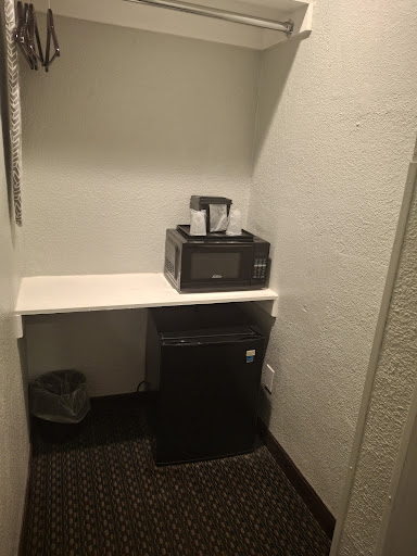 CONS: TERRIBLE linens, towels, and especially pillows. We ended up buying some pillows and towels from Target. It was that bad. We also needed 2 blankets because they are so thin and useless. It seems like they found the absolute cheapest version of each thing - tiny, scratchy towels that don't dry you off, pillows that are basically an empty sack with a couple cotton balls, you get the idea. The "soap". I don't know where to start on this. Instead of providing bars of soap and little shampoo bottles, this place has 2 soap dispensers like you'd see at a public bathroom: one by the sink and one in the shower. It's labeled as for "body and hair shampoo". The stuff makes no sense and doesn't work well for either purpose. Very strange. Super old analogue microwave No coffee machine The rooms are TINY. Like slightly bigger than a walk-in closet. It's super claustrophobic - it's basically the bed and bathroom with no breathing room. The bathroom sink is a tiny vanity with no room for stuff. The ice machine is outside with no cover, so when it's raining you will get very wet. No food/snacks/hygiene stuff/etc. on premises. There is a soda can vending machine that was empty for our entire stay. The doors are horrible. You wouldn't normally think about doors, but ours was a big problem. It had no seal, so light, smoke, and cold air were constantly seeping in. Our door also didn't close properly. If you wanted the door to stay closed, you have to either slam it or pull on it with your full body weight. It was very easy to forget and have it swing open in the middle of the night. We were very worried about leaving for the day and having the door not stay closed.