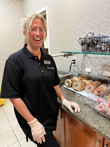 We stayed here to facilitate the hernia surgery for my partner at UFirst Health. The hotel provided free shuttle to/from the surgery center. Claude, who was our driver most of the time was so wonderful. Everyone at the front desk we met (Merle, Gaven, and Alex) were so kind and helpful. They even gave us packing tape, scissors and a tape measure to ship a box of clothing and shoes home when we realized the bag for my partner would be too heavy for him to carry after the surgery. Having a business area with a dedicated printer made creating a UPS label super easy. And, we loved the thoughtful and interesting breakfast options created by breakfast chef, Lisa. I especially liked that Oak Milk was an option instead of Cow's milk. My breakfast fave was the crustless quiche. We also met Paul, the Engineer who drove the shuttle one time..another kind person. Lastly, the location near the airport and having a couple restaurants across the street was perfect. So, needing to be in a hotel while my partner recuperated, was really just fine. The room had a separate sitting room with a desk (great for me) and...I even used the workout room to lift weights one day.