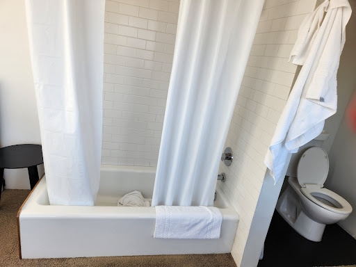 Read moreWe had high hopes for the Apboba for our three night stay in San Diego. However, we were disappointed with pretty much the entire experience. I will say that the Hillcrest neighborhood appears to be a cool area, but there was a definite issue with folks smoking what appeared to be crack and lots of shouting and threatening passersby. Not that I don't expect this in a large city, but even in often chaotic places like San Francisco there has been some sort of security or staff to help guests feel safe. Not the case here, it was out the gate and into the fire (literally, there was a clearly mentally ill guy waving around a lighter set to high). If the rest of the stay had been okay, this would not have seemed as big a deal, but unfortunately that was not the case. The property is - and there’s no nice way to say this - dirty. Our room had a variety of stains on the walls and carpet and had an overall feeling of “eh,” when it came to keeping up the place. The pictures on Expedia make each room look unique and sort of European in design, but really it’s just a weird layout filled with way past-its-prime Ikea furniture. Here are a couple other unfortunate details:||||1) The parking is extremely limited. We paid for three nights worth and were only able to successfully park one of those three nights, which meant trying to find neighborhood parking at night (see the above crack-smoking comment). The first person from the hotel I spoke with kindly refunded the first night’s parking fee. The second time it happened, however, the hotel representative (different guy, I think) was surly and said the hotel policy clearly stated there was no guarantee of parking and was made it seem like he was doing me a favor by refunding the fee. This was not exactly the attitude I wanted to deal with on Thanksgiving night while I looked for street parking. ||2) The front courtyard is torn up, including large piles of dirt and various construction equipment about. Apparently they are building a wine bar, but it didn’t look like it was going particularly well. ||3) The little store, one of the hotel amenities we were excited about visiting, never opened, which although not a big deal was sort of disappointing, given that we needed a positive from our visit, and that little record store may very well have been it, had it opened. (The property promotes this store quite heavily as a unique feature, and it looked to be just that, through the window, at least.)||4) You enter and exit the building and rooms using codes, not keys, which I understand is the new, hip way of accessing a hotel. But honestly, it’s just sort of weird and kind of a pain. Call me old school, but I’d rather have a face-to-face conversation with someone rather than just show up and be greeted with a text of a code and make my way to my room. Lesson learned about staying at hip hotels. Check-out was a clipboard near the exit with a place to write one’s name and room number. I forgot to do that. ||5) Okay. The bathroom. Other reviews mentioned this and I should have paid more attention. The bathroom is absolutely not private in anyway whatsoever. The folding bathroom “door” is impossible to really describe, but I will try. It’s like half of a shutter door, poorly installed, and near impossible to open without exerting oneself. Once the door is open, there is the toilet (which, again with the hipness, has a small sink built into the top of it so you wash your hands with the water refilling the tank; neat idea but unpleasant to use). Once in the bathroom, one must work to get the door closed again for any kind of privacy, which is sorely lacking due to the folded nature of the door and the lack of ceiling. The whole thing reminded me of a bathroom on a boat, for some reason. We used the sink in what I suppose is the kitchen area to wash up and brush our teeth. It had a garbage disposal, which for some reason made me laugh.||||I do not enjoy writing negative reviews, and had the second gentleman I talked to regarding the parking been a bit less irritable, I probably wouldn’t be writing this review, but it just pushed me over the edge. Even given all of the above, there are some pluses. The hotel is unique, and the architecture is interesting in an industrial sort of way. Also, a pleasant hospitality worker kindly brought me some towels on the third day (granted, I had to ask as there is no daily cleaning here). The neighborhood, Hillcrest, is an LGBTQ hub with quirky restaurants, vintage clothing stores, bars and the like. On the second day of our stay, an aggressive and angry houseless guy accosted us on the street just outside the hotel, demanded to know our names, claimed his mother owned the Apboba, and said he would never let us stay there again. At the time I dismissed this as a guy in need of mental help, but given everything else, maybe he was telling the truth. Message received, yelling bearded guy,...
