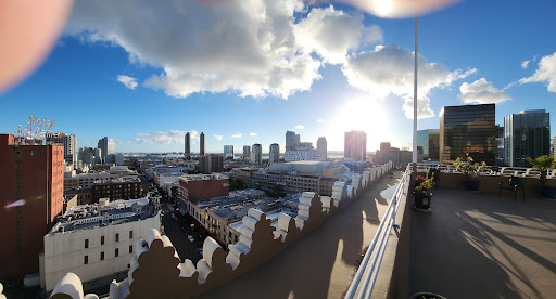 Read moreAfter staying at the Hilton La Jolla Torrey Pines (which cost twice as much) for work, I moved here to be in a more interesting locale. I’m so glad I did! Yes, the hotel and its furnishings are old. If you don’t like that sort of charm, you might not like this. But if you like to be able to use public transit or walk to Balboa Park, the zoo, Seaport Village, Gaslamp’s nightlife, and other attractions, this is a great value for your buck. The staff are nice and seem to be proud of where they work. ||The room is SMALL but was fine for me as a solo traveler. The window was directly next to another building, so natural light was extremely limited. Since there was no luggage rack, I used the full-size ironing board to set luggage on, which worked out great! As another reviewer recommended, I requested a room that did not face the street to avoid noise from the dance clubs on 5th Avenue closeby. I definitely recommend that, as even on a Wednesday night, they were LOUD, but I heard nothing in my room 306. The bed was firm, which was fine for me. As someone who gets too hot in most beds, I appreciated that there weren’t a bunch of heavy covers on this one. Note that it is right up against the wall. The shower was a bit weak and towels a bit rough, but that’s not a big deal for me. I care more about quiet and location.||I was pleasantly surprised to have a small kitchenette equipped not only with a mini fridge and microwave but also dishes, utensils, a cutting board, and a few other items (no stove). Be sure to check out the rooftop terrace for great views of the Gaslamp Quarter and all of downtown! I also loved that the Shout House dueling pianos bar was only a few blocks away, where they put on a top notch show, which has no cover on...