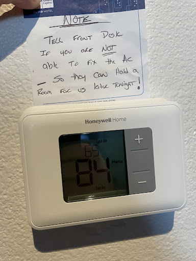 The room I was in made a nice first impression as far as cleanliness goes, but some brief exploration revealed three seemingly non-functional light switches and a non-functional panel for the cooling/heating system. The latter in particular worried me, as I initially thought I’d be unable to adjust the temperature in my room, but it turns out that I just had to adjust it at the unit underneath the window, despite a sign on that unit claiming that I couldn’t do so and would need to use the non-functional wall panel.