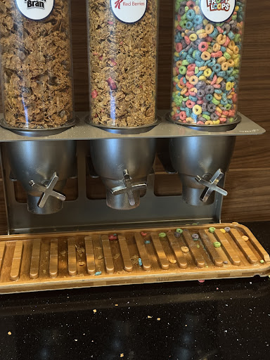 BREAKFAST/SNACK SHOP: Breakfast was the least impressive part of the stay. There was a gentleman and lady working the breakfast area on Monday 6/17. I felt the lady worked harder than the gentleman did. The pancake machine was empty, somebody asked the gentleman to fix it.T The gentleman then went to get the lady to replace the pancake batter in the machines, but she was busy finishing cooking the breakfast potatoes, I didn't understand why he just didn't do it himself... The cranberry juice from the juice machine was watered down and I was going to tell the the gentleman about it, but he was making himself look busy stuffing more forks and spoons into the utensil holders even though the holders were almost completely filled with utensils. It appeared he was just doing easy jobs to look like he was busy and couldn't be bothered, but that's just my opinion, I could be wrong. The snack shop provided a nice selection of snacks, soft drinks, beer, microwave meals and any emergency toiletries you need.