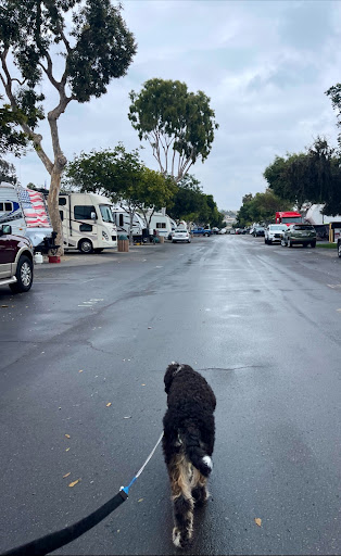 There are washers/dryers and bathrooms on site, and while I peaked, we didnât use them. They both seemed clean but dated, and there are only a few washers/dryers as another reviewer mentioned. We were told that the Wifi was useless (by the staff and other campers), so we didnât bother, but our Verizon worked fairly well with some lagging around prime hours. There isnât anywhere to walk a dog within the CG, but there was a path just outside the park along the bay that worked just fine (mentioned above) or the Mission Bay trail is available for dogs before 9am or after 4pm/6pm (depending on the month). The park does allow package delivery, sometimes it goes directly to your site, sometimes the office, but UPS, FedEx, Amazon, and USPS (not individual pieces of mail) are allowed.